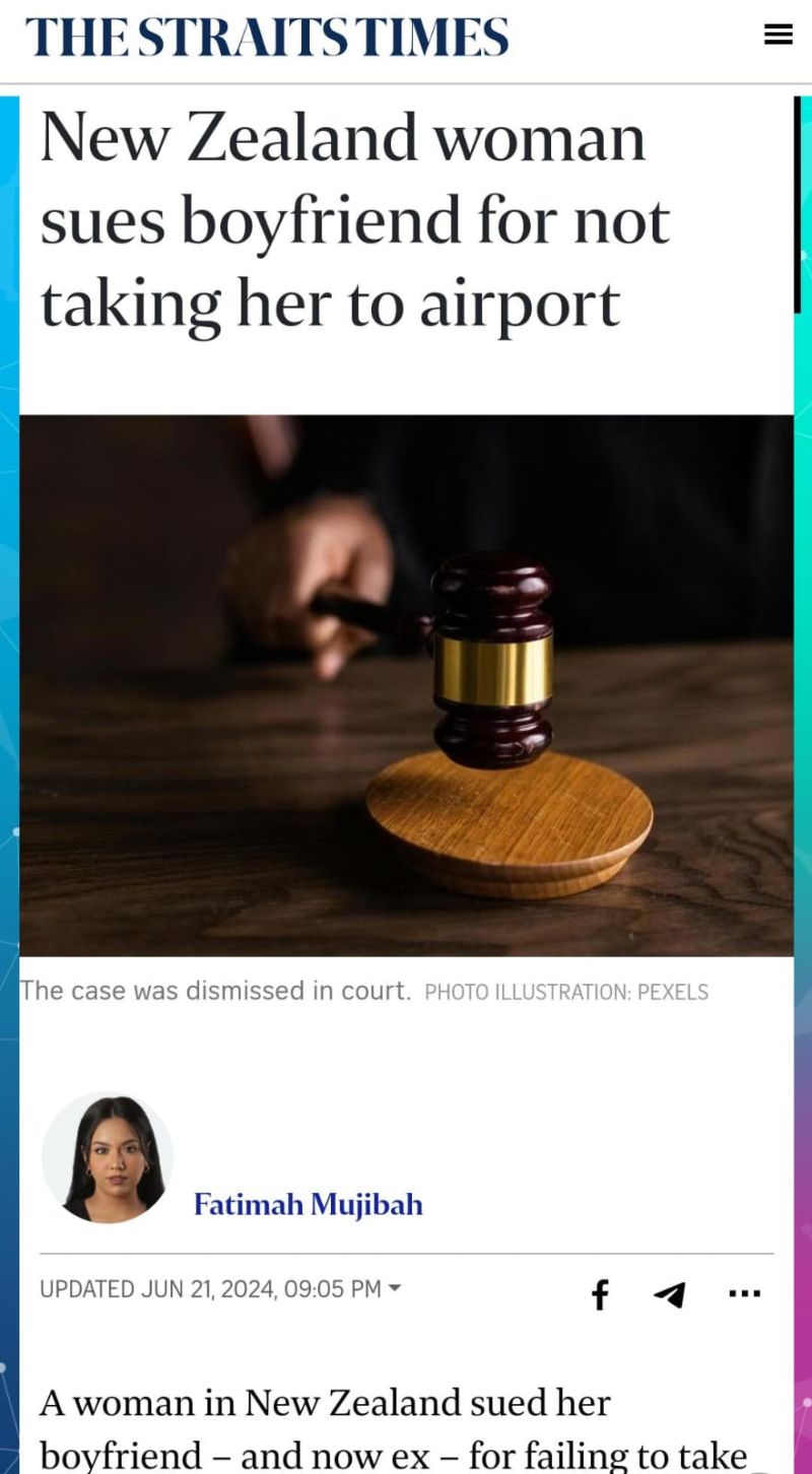 https://www.straitstimes.com/world/new-zealand-woman-sues-boyfriend-for-not-taking-her-to-airport
